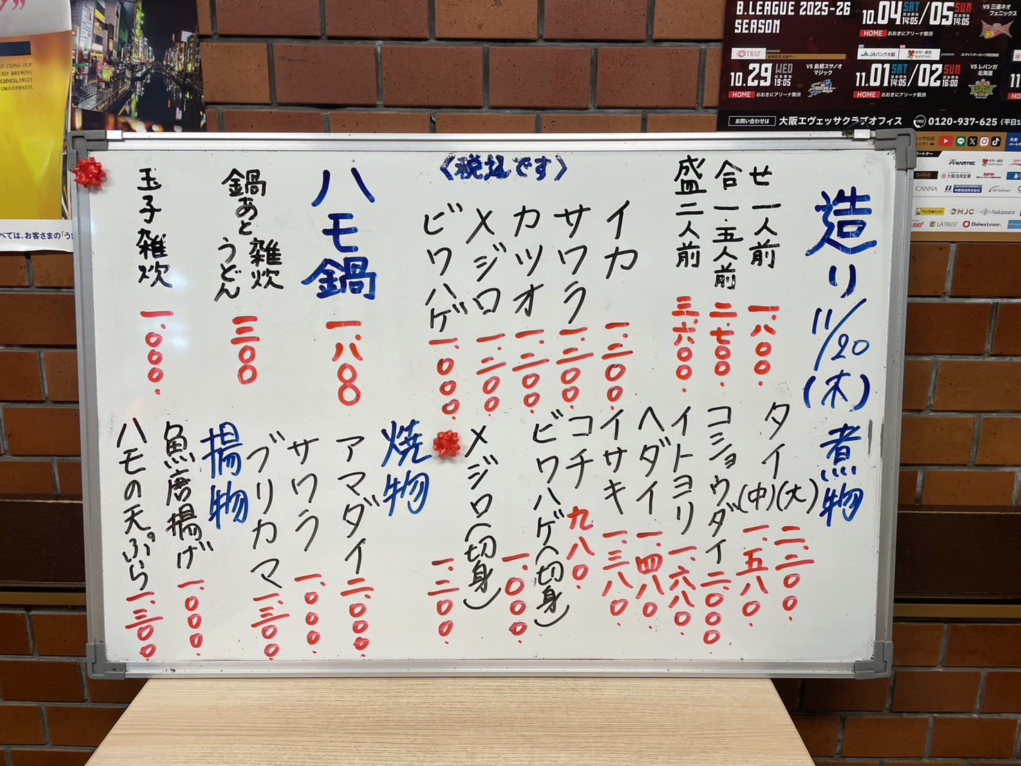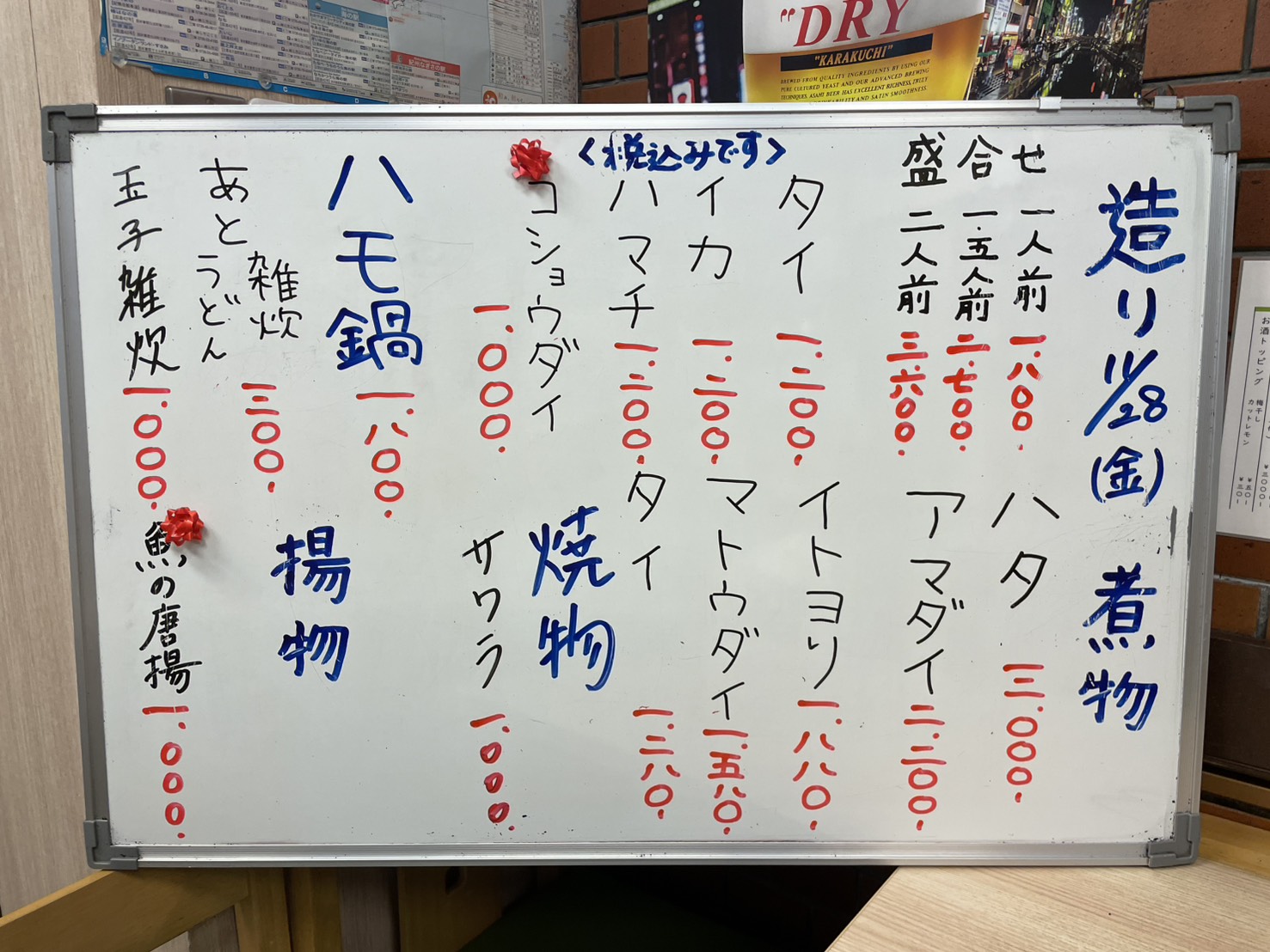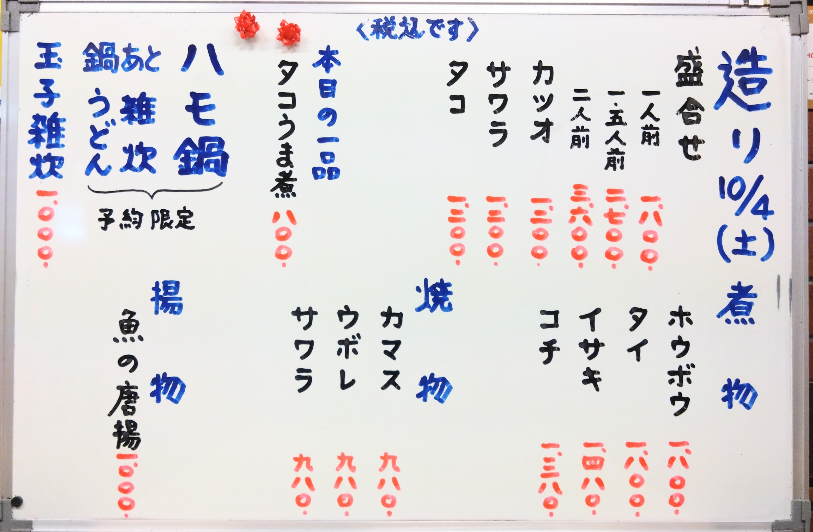 当日仕入の「本日の魚」メニューと、ご予約の人数に合わせて当日入荷した新鮮な魚を提供する「おまかせフルコース」も承っています!